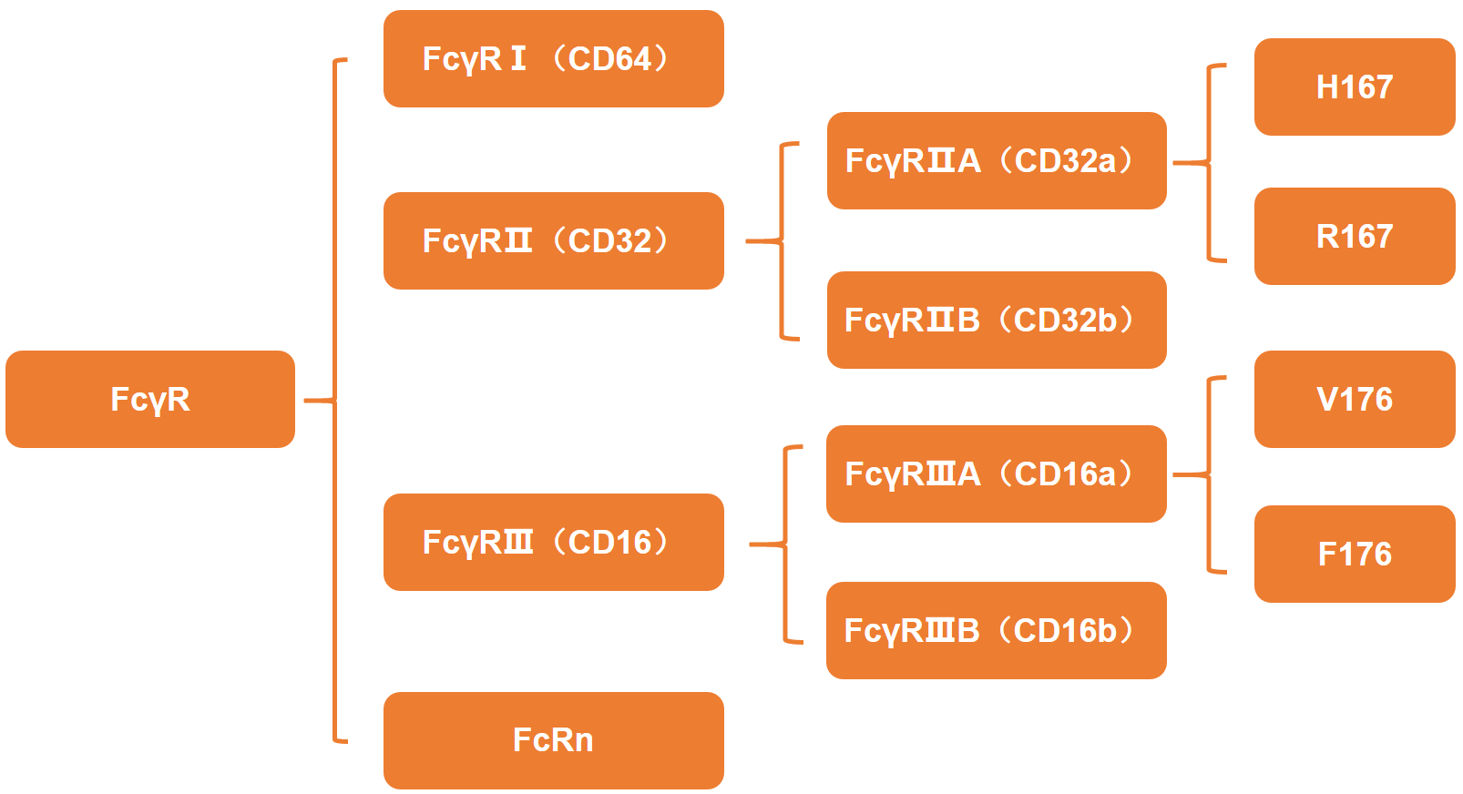 ADCC主要通过抗体与效应细胞 (如NK细胞) 上的FcγRIIIA (CD16a) 结合而发挥对靶细胞的杀伤作用;ADCP主要通过抗体与效应细胞(如巨噬细胞、中性粒细胞和树突状细胞等)上的FcγRI (CD64)、FcγRIIA (CD32a) 或FcγRIIIA (CD16a) 结合而发挥对靶细胞的吞噬作用,其中FcγRIIa (CD32a)被认为是参与这一过程的主要Fcγ受体。